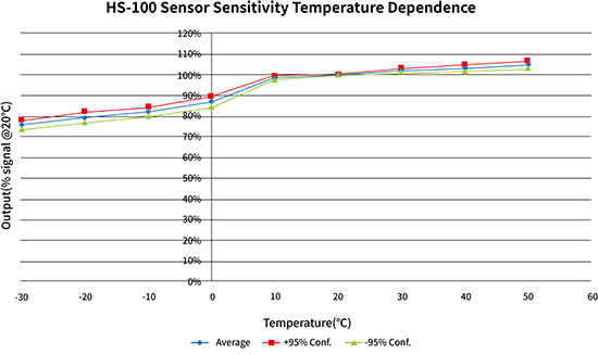3.交叉靈敏度會有30%的浮動,并且可能隨生產(chǎn)批次不同和傳感器的壽命而變化。